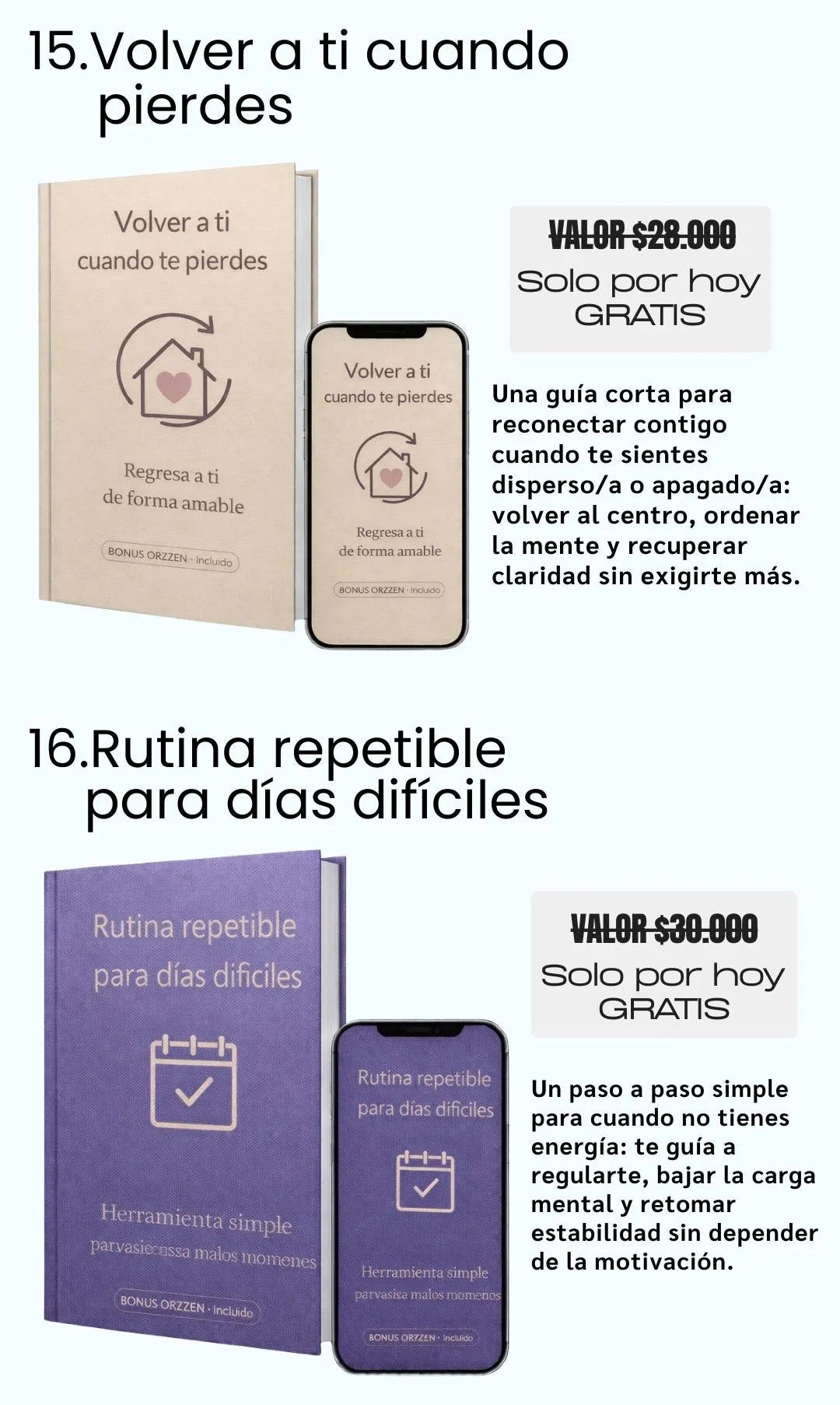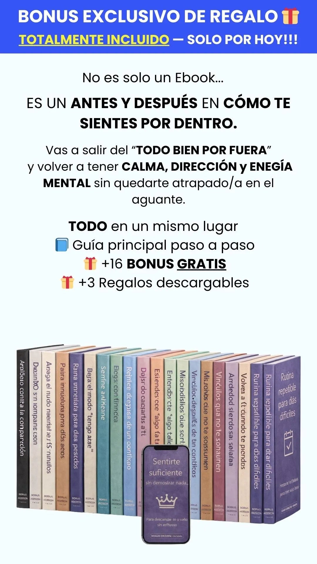 Recibes acceso inmediato al ebook “Hago todo bien, pero no me siento bien” + el plan práctico de 7 días y sus ejercicios para aplicar en 15 minutos al día (mas 16 bonus regalo descargables).